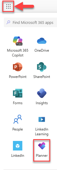To access Planner, go to https://planner.cloud.microsoft/ or log into the Microsoft 365 site at https://office.com using your McGill Username and Password.