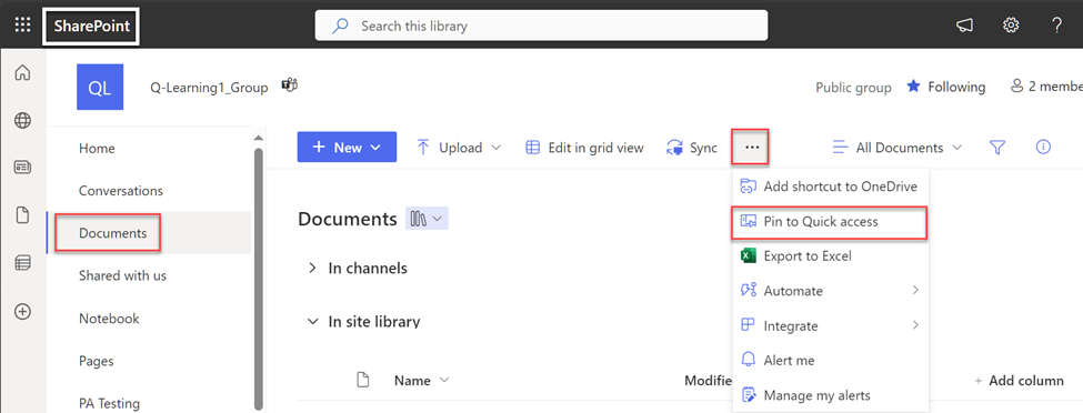 - Pin SharePoint Library to Quick Access: Pin the SharePoint library to Quick Access for easy accessibility.