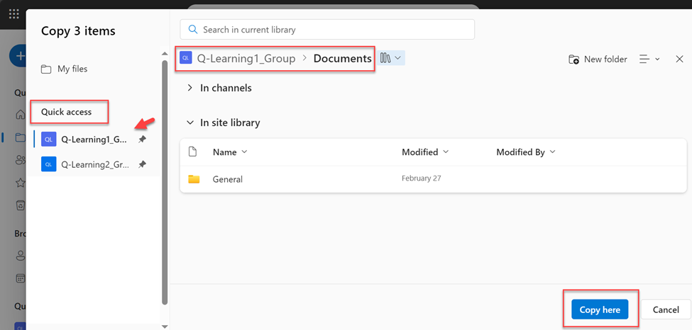 - On the next window, locate the SharePoint site listed under Quick Access as the destination.