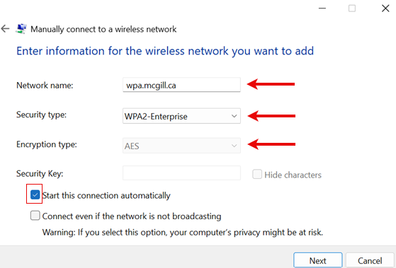 This article will show you how to configure your Windows 11 device to access McGill's wireless network.