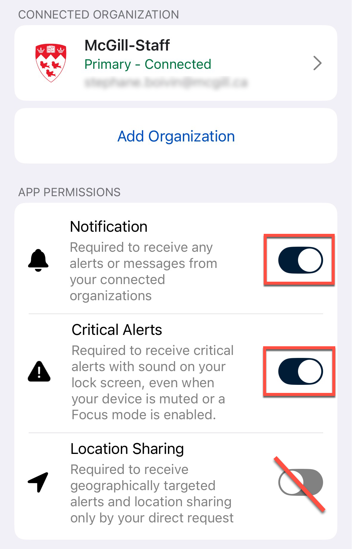 - Critical notifications must be enabled for Critical communications to be received. (Don't worry; our notifications will never include alert sounds.)