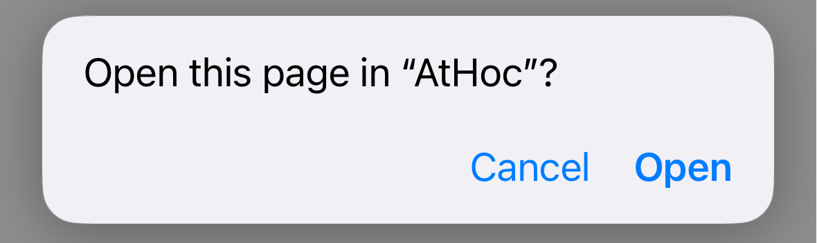 - You will receive a message asking you to open the AtHoc application. Click Open.