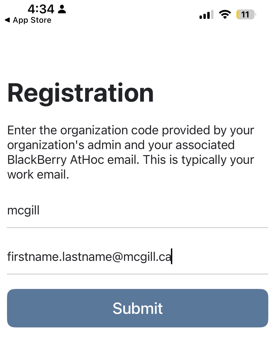 - On the Organization field, type McGill.