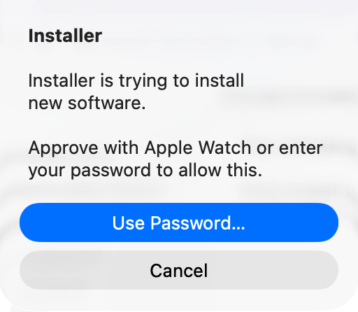 - Enter your Mac password to proceed with the installation.
