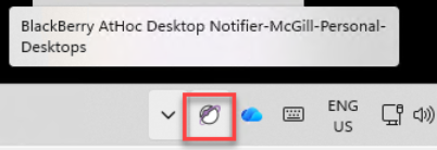 When the BlackBerry AtHoc Desktop Notifier is running, you will see its icon in your Windows system tray.