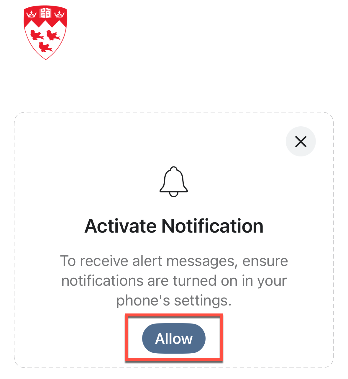 - On Activate Notification, click Allow.